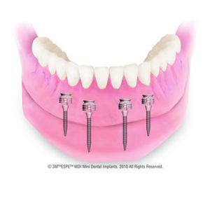 MDIs are a breakthrough for people with missing teeth and for denture wearers. One significant advantage MDIs have over root form implants is that they offer a viable treatment choice for patients looking for the least invasive, most cost effective treatment to replace missing teeth. Depending on the quality and density of jawbone available at the implant site, several of these mini implants may be implanted at one time. Unlike root form implants, MDIs don’t require invasive surgery, which makes MDIs a gentler option. Root form implants can be more expensive to place because the treatment typically requires minor surgery of the gums and a 4-6 month healing period resulting in more visits.